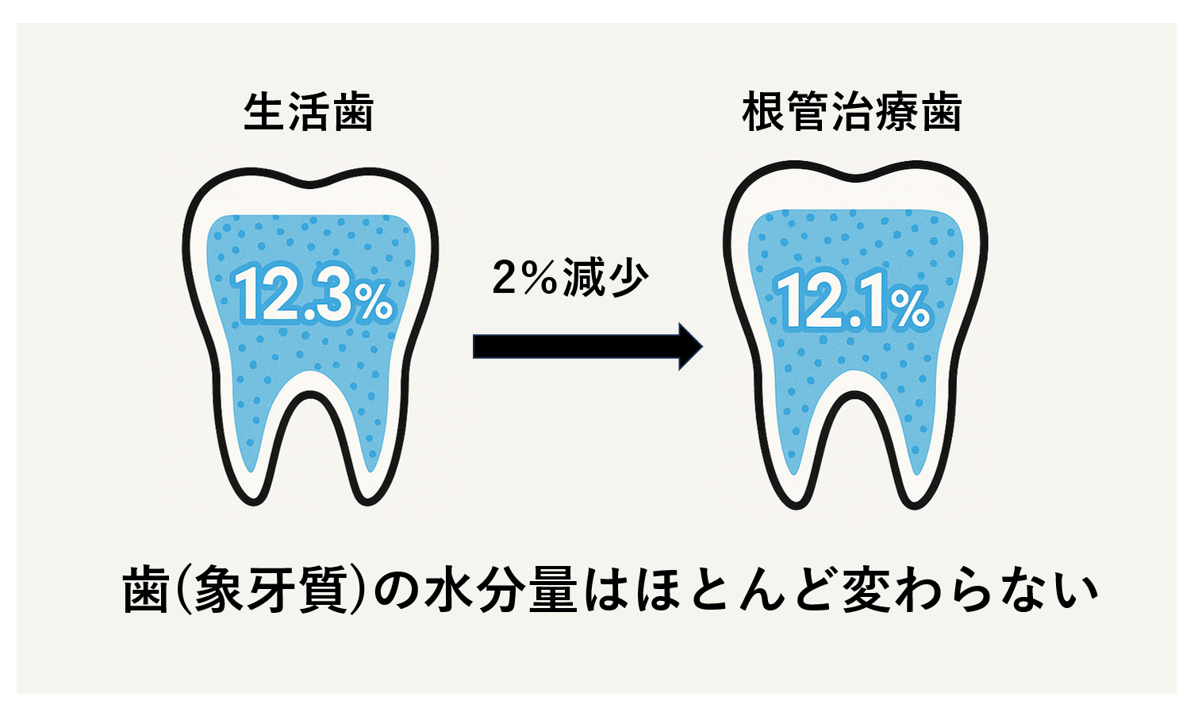 生活歯と根管治療歯の水分量の差はわずか2%程度(参考文献①)